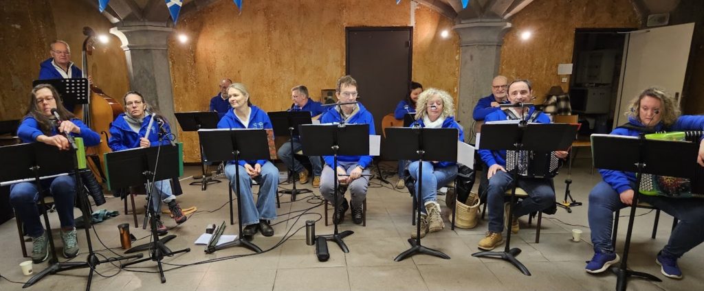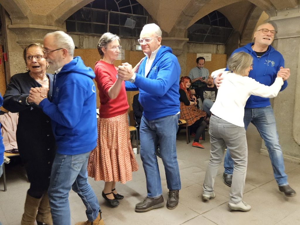 La soirée écossaise “Un p’tit air d’Ecosse” organisée par l’Alliance Grenoble-Oxford a maintenant pris ses marques en début d’année. Jacques Arnoux a toujours autant d’enthousiasme pour expliquer les différents pas de danse. Heureusement, des adhérents de son club de Danse Ecossaise de La Mure étaient là pour nous indiquer les bons mouvements et directions à prendre dans les différentes danses, Britannia twostep, Hedwig’s reel, Pudsey bear, Swedish masquerade, Canadian barn dance, Gypsy thread. Nous avons profité pleinement de la qualité de la douzaine de musiciens du groupe O’ Celtish de l’école de musique de Bourg d’Oisans. Véronica avait sorti de sa réserve un large choix de décorations écossaises (saltire, buntings, plaids, …) pour décorer la crypte et le stand de ravitaillement où il était indispensable de s’arrêter pour déguster tarte aux pommes , cidre et autres boissons, après toute l’énergie dépensée.